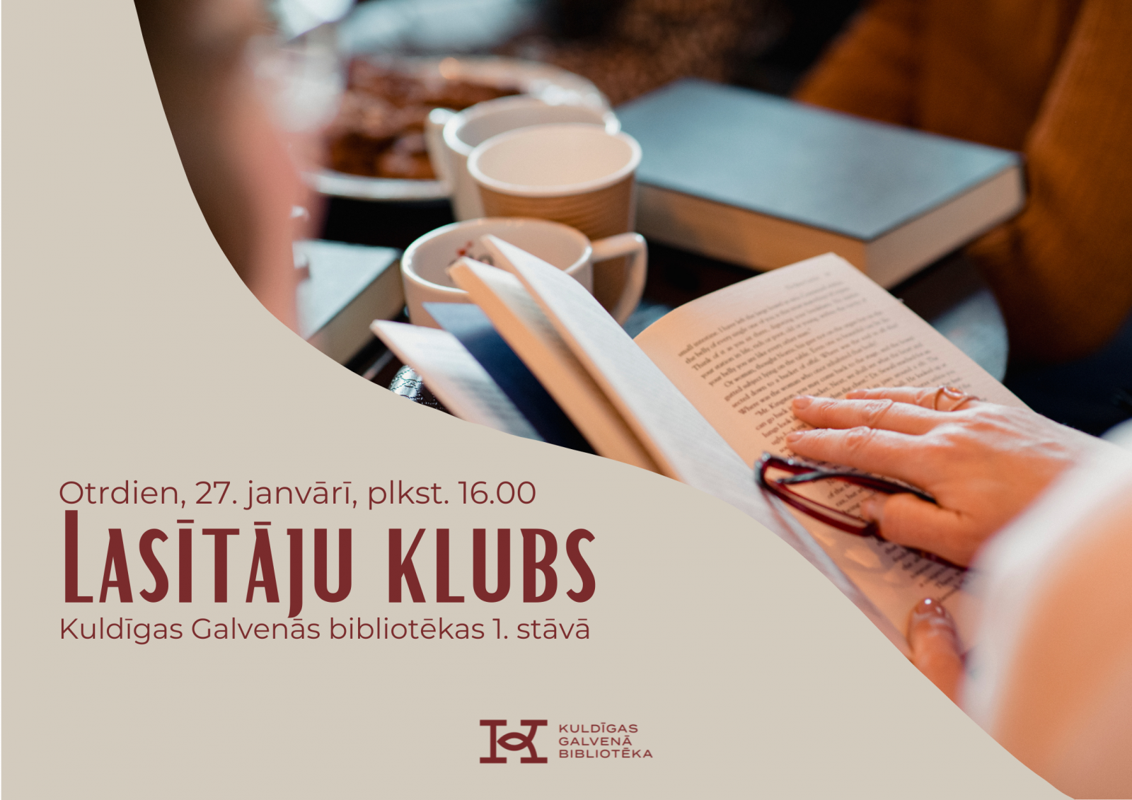 Otrdien, 27. janvārī, plkst. 16.00 Kuldīgas Galvenās bibliotēkas 1. stāvā notiks Lasītāju kluba tikšanās.